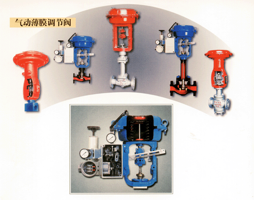 氣動薄膜調節閥是氣動單元組合儀表中的執行機構,它由氣動薄膜執行機構和調節閥兩大部分組成。它與氣動調節器、減壓閥、定位器或其它儀表配合使用,可自動控制管道介質的流量。配上電氣轉換器等還可和電動儀表配合使用。它具有結構較簡單、動作 可靠、防爆、防燃的特點,因此在石油、化工、冶金、電站等工業部門得到廣泛應用。